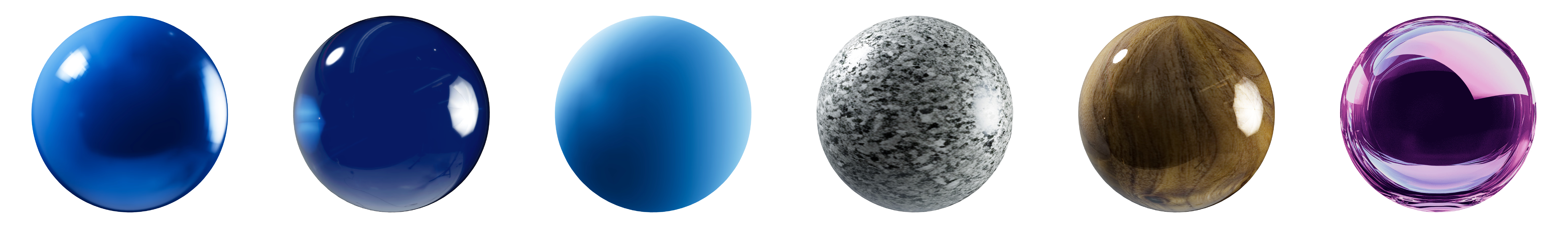 - Glass: Realistic refraction and transmission properties.